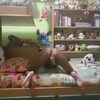 Descrizione: Prima cerco di mettermi il vestitino, poi vado verso di lui a succhiarglielo.